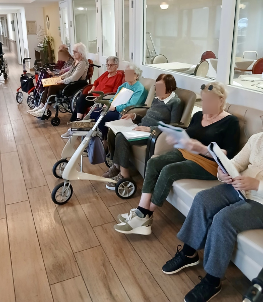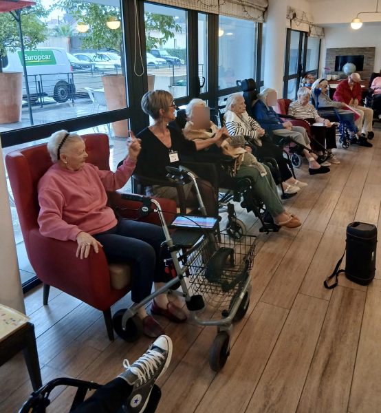 Chaque lundi après-midi, un moment très attendu par les résidents prend vie : l’animation chorale avec Nadine l'animatrice . Ensemble, les voix se rassemblent, les souvenirs remontent et les sourires illuminent la salle.