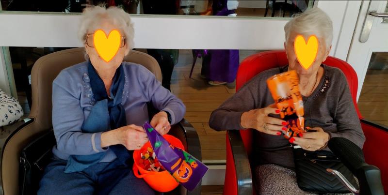 Accompagnés de nos résidents complices, le joyeux cortège a déambulé dans notre manoir fantomatique, décoré pour l’occasion. 🎃
