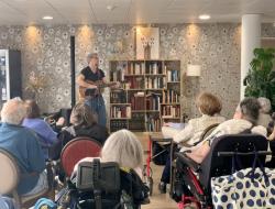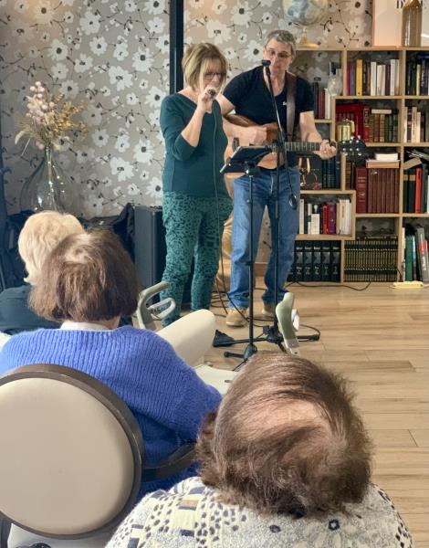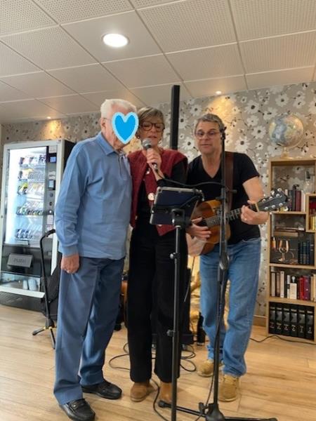 Nadine, notre animatrice, a réussi à faire chanter résidents et familles lors d’un karaoké convivial, le tout accompagné par le talent de notre guitariste. Un beau moment de partage, de joie et de musique pour tous. 🎶