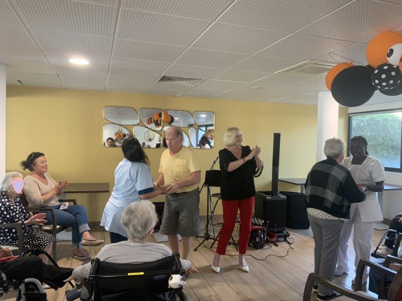 La résidence a vibré au son de l’accordéon grâce à Joëlle, notre talentueuse accordéoniste. Dès les premières notes, les visages se sont illuminés, les pieds ont commencé à battre la mesure, et très vite, la piste s’est animée de pas de danse empreints de gaieté.