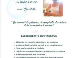Des instants de relaxation plus profonds ont aussi été proposés grâce à des massages réalisés par Christelle une naturopathe, spécialisée en bien-être et en réflexologie. Par des gestes délicats et enveloppants, ces soins ont contribué à apaiser les tensions, stimuler la circulation et procurer une sensation de réconfort et de sérénité.